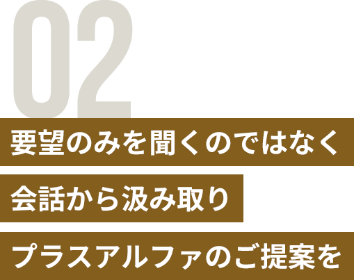 お客様一人ひとりに寄り添い、プラスアルファのご提案をおこなうため「こうすればお客様はもっと喜んでくれるのでは?」と感じた内容はすべてお話しいたします。